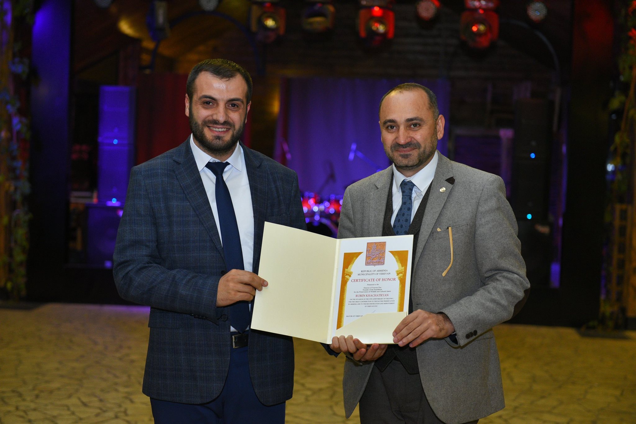 Ruben Khachatryan, the Director of FPWC received Certificate of Honor from Hayk Marutyan, Yerevan Major on the occasion of the 15th anniversary of FPWC, for the great contribution to the nature preservation in Armenia and the reconstruction and improvement of Yerevan Zoo.